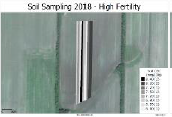 Figure 4. Soil sample map and analysis results combined by Ben Schapelhouman (TECC Agriculture).