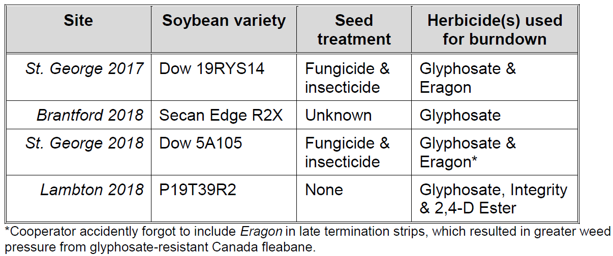 Table 2. Soybean Variety, Seed Treatment And Burndown Herbicide For Each Site