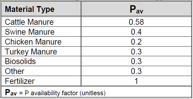 Comparisons were made of WEP and to the portion that WEP represented of the total phosphorus in the sample. A typical application rate (based on nutrient content spring applied to a corn crop) was calculated for each sample to determine how much actual WEP was applied so that risk can be assessed considering both concentration and rate for various livestock species.