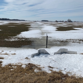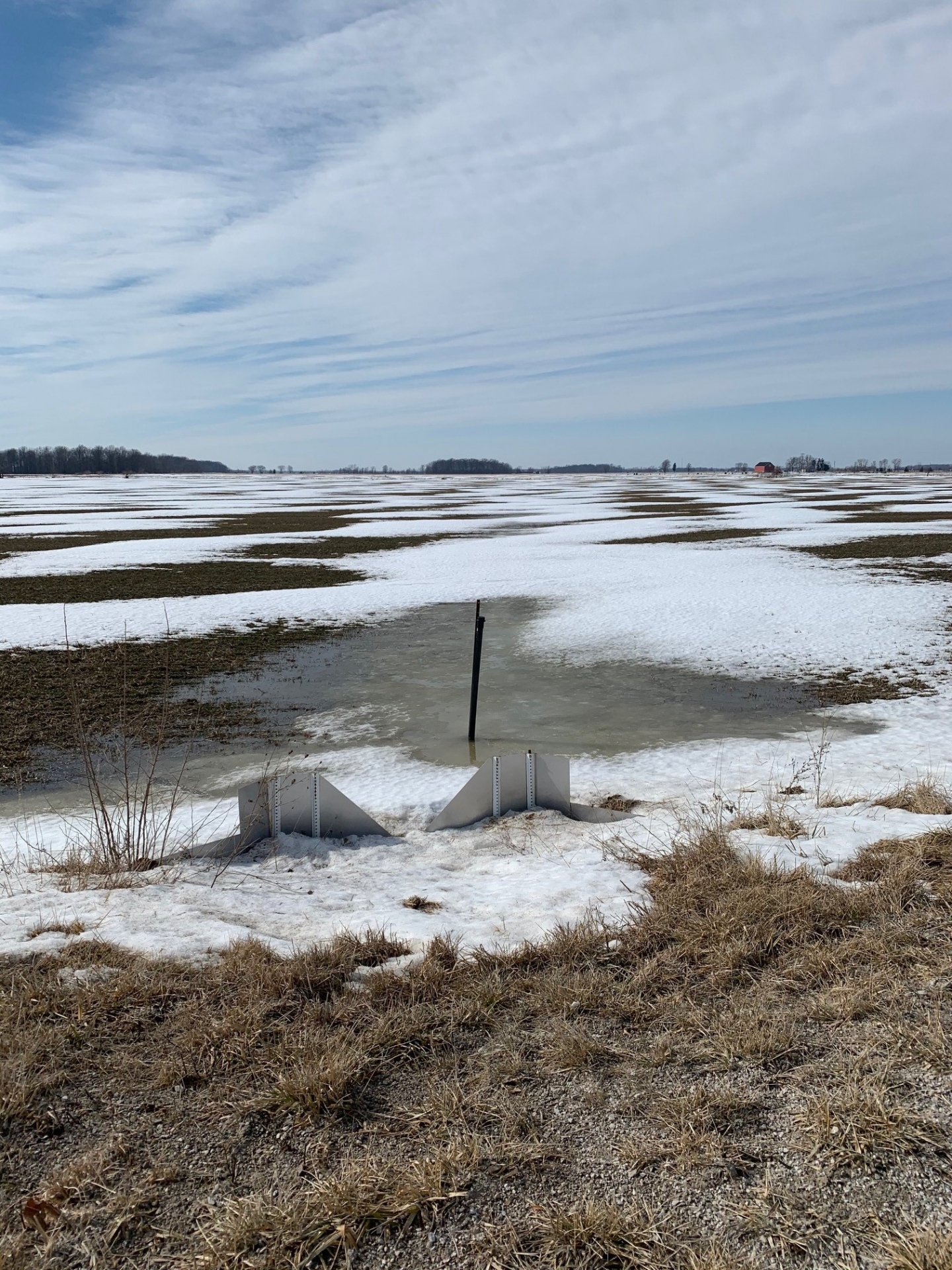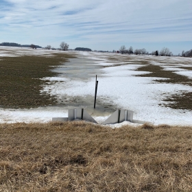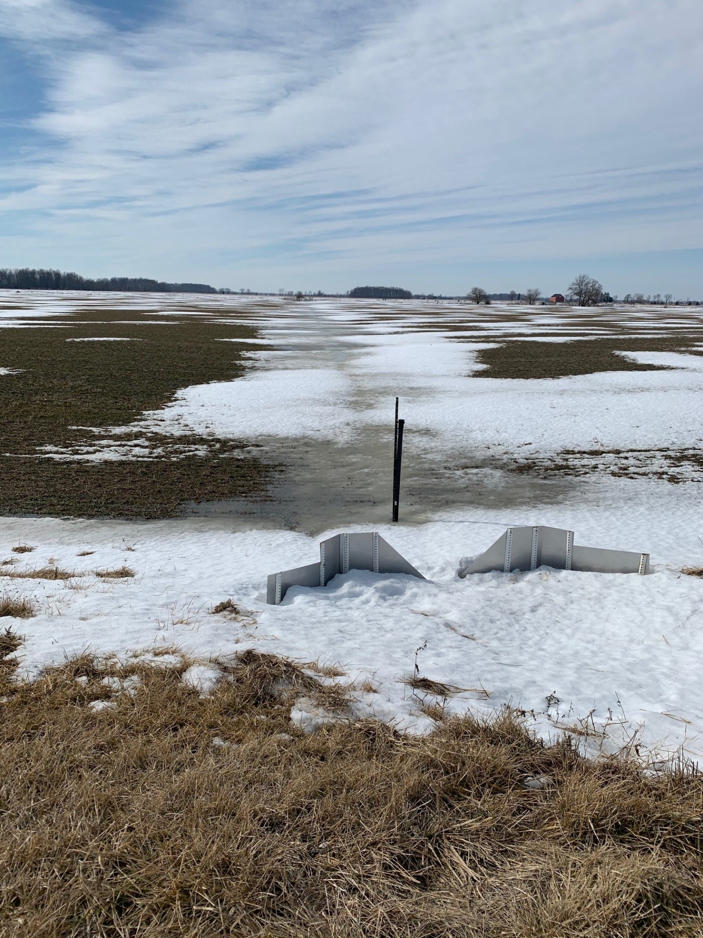 The Wigle Farm Edge of Field site is a 48 acre parcel of land that is committed to using conservation practices, including no-till, and uses a full crop rotation that includes corn, soybean, wheat and cover crops. The parcel has three distinct overland swales where weirs have been constructed to collect surface water during extreme rain/snow melt events. Three level loggers have been installed at each weir that will allow for the calculation of the volume of water that leaves the field via surface flow. These data will be used in conjunction with data from other sites involved in the ONFARM program to determine BMP effectiveness.