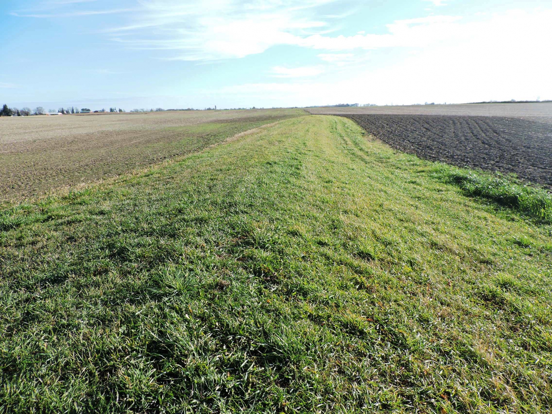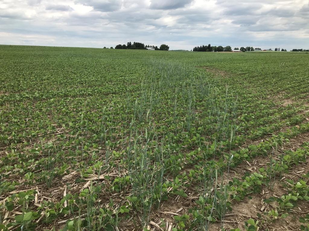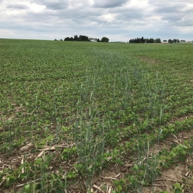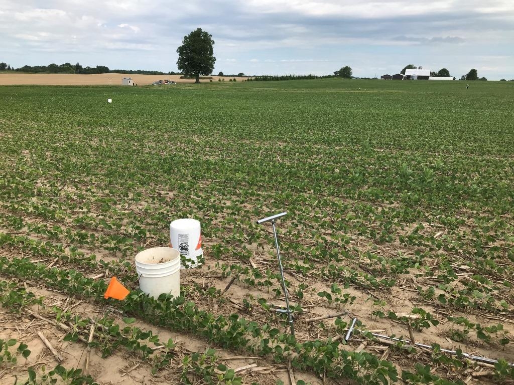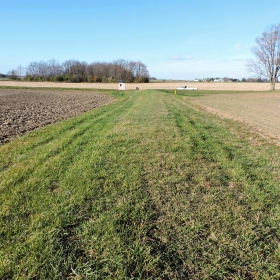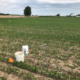 This project aims to quantify the impact of cover crops on water quality at the field scale. Cereal rye was planted in fall 2020, following soybean harvest, and a portion of the field was left without a cover crop. A T-shaped berm in the field separates the two treatments, each with its own tile and surface outlet. The cereal rye will be terminated in the spring ahead of sweet corn and the cover crop trial repeated in fall 2021.