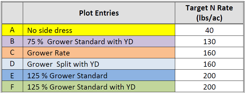 D: The Grower rate was split into 1) a sidedress application and 2) a Y-Drop application to test late applied N value at commonly used rates