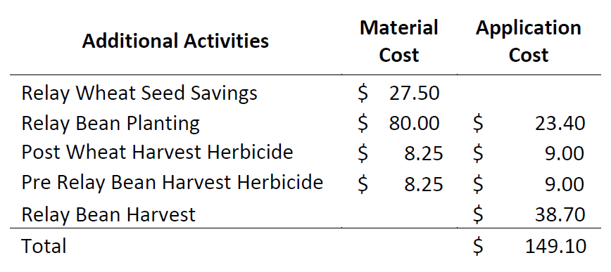 When doing a site by site analysis the only site to have a high return from the relay system over a regular wheat crop was in 2019 at Belmont. It can be assumed that it was due to only a 3.8 bushel yield difference in the wheat and a respectable 17.7 bushel soybean yield. The advantage to the relay system was only $19.10 per acre higher than a regular wheat crop.