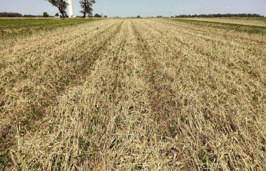 Figure 11. Soybeans in a roller crimped treatment at the Seaforth site in 2020 on Jul 6th, approximately one month after planting.