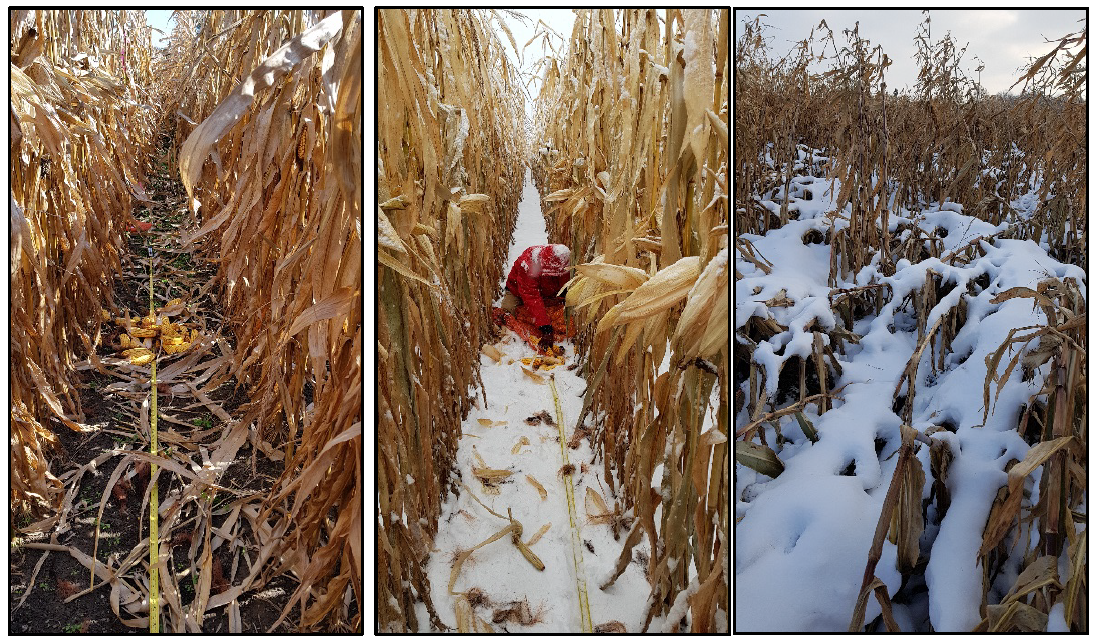 Figure 5. All 17 sites were hand harvested. The late start to the planting season meant a later harvest with some project fields not being combined until winter. Stalk strength was a significant issue in one location.