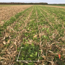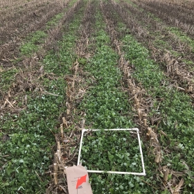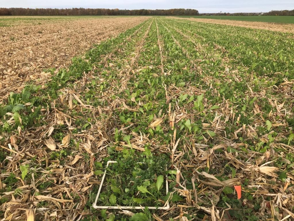 2020: Corn under minimum tillage with 2 early interseeded cover crop mixes