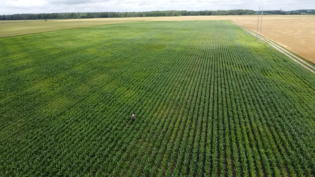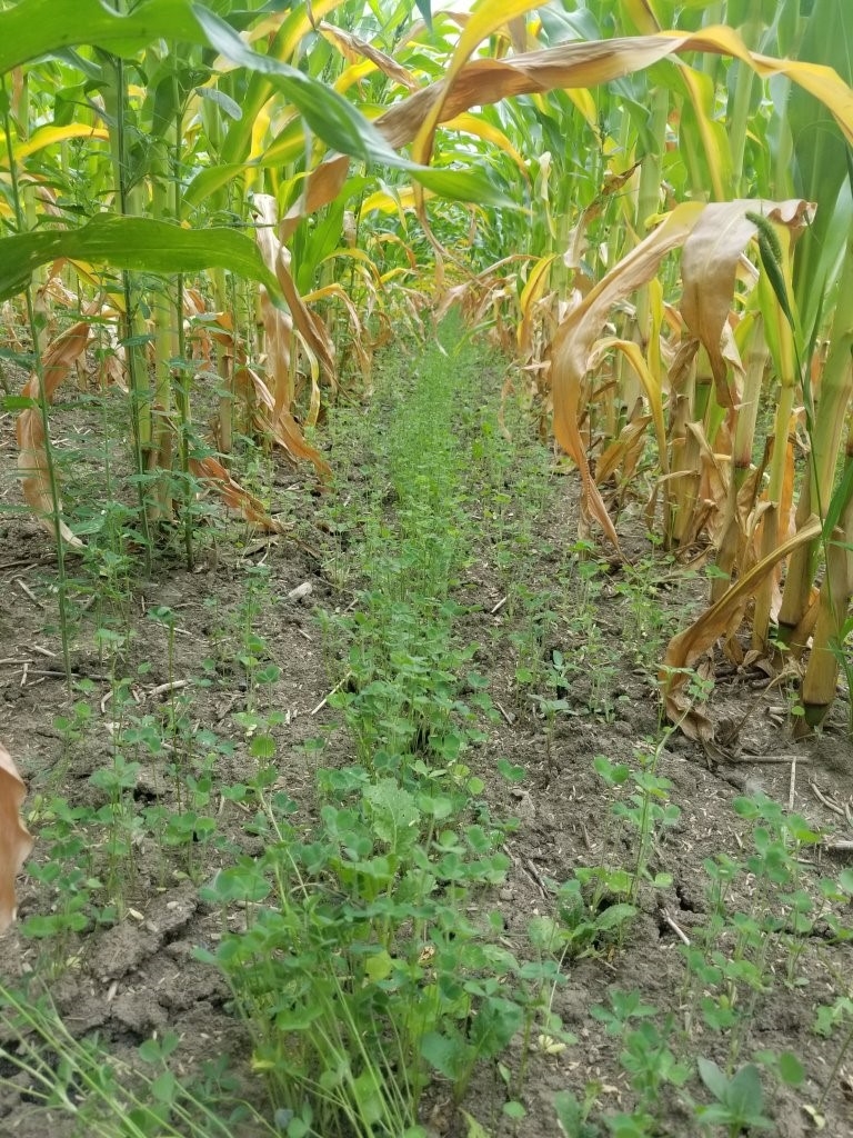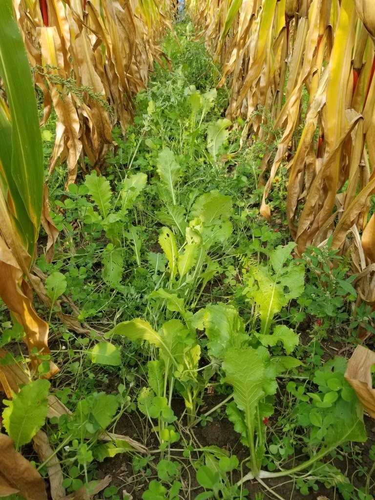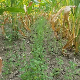 2021: Corn under minimum tillage with 2 early interseeded cover crop mixes