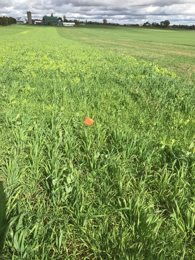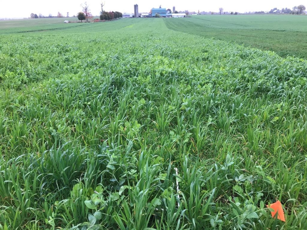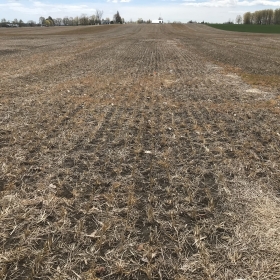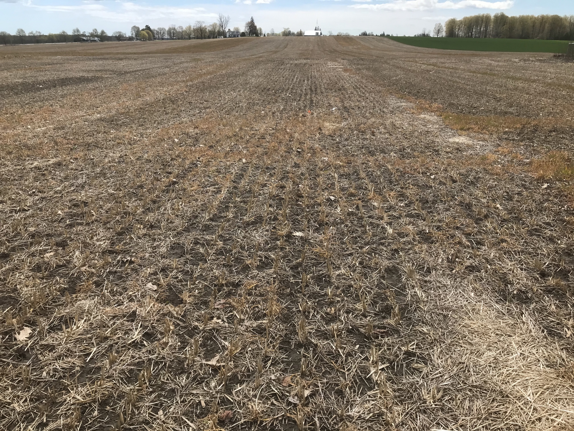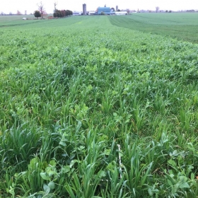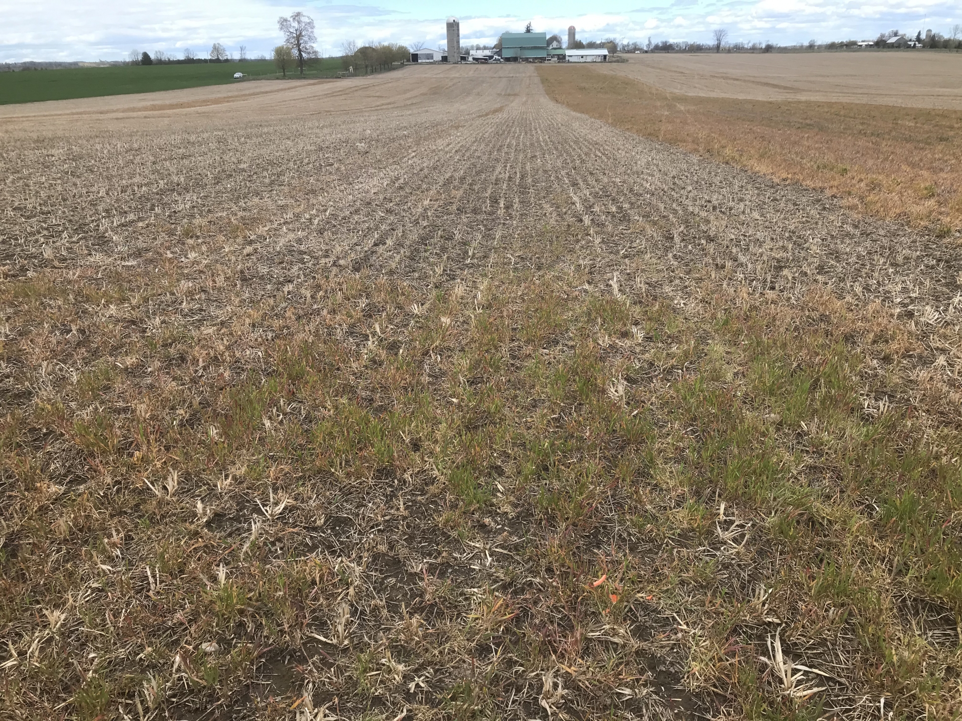 The best management practice (BMP) shown at this ONFARM site is a comparison of cover crops from single species to multi-species cover crops. The field site is a uniform sloped rolling landscape on a sandy loam till soil. The soil health goals are to increase organic matter and improve water management to optimize productivity.