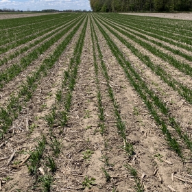 2020: Soybeans under minimum tillage management preceded by organic amendment and followed by a cover crop