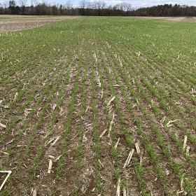 The best management practice (BMP) shown at this ONFARM site is the use of cover crops in a corn-soybean rotation. The field site is a gently rolling landscape on a fine sandy loam soil. The soil health goals are to improve the soil with cover crops in a corn-soybean rotation.