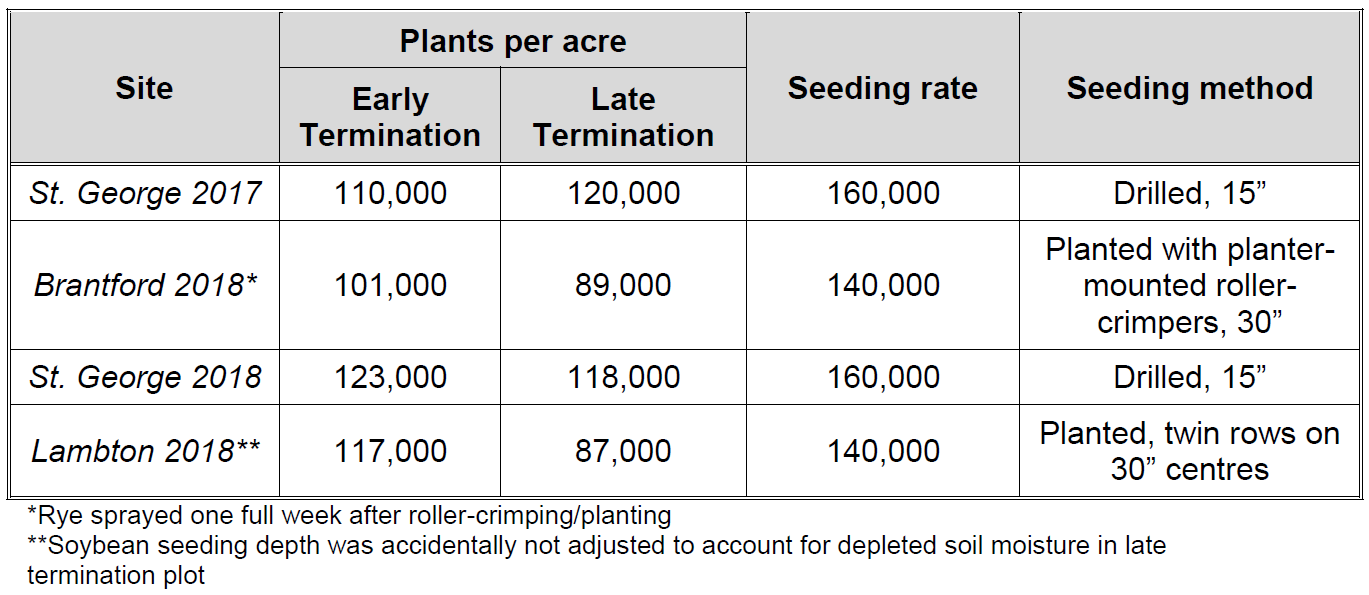 Delaying termination of rye does not come without some risk. Soybeans stands were reduced at some sites (Table 4). It’s particularly important to plant into moisture and ensure that the seed trench is closed. Also, if conditions are very dry leading up to planting, terminating rye early can avoid even drier soil.