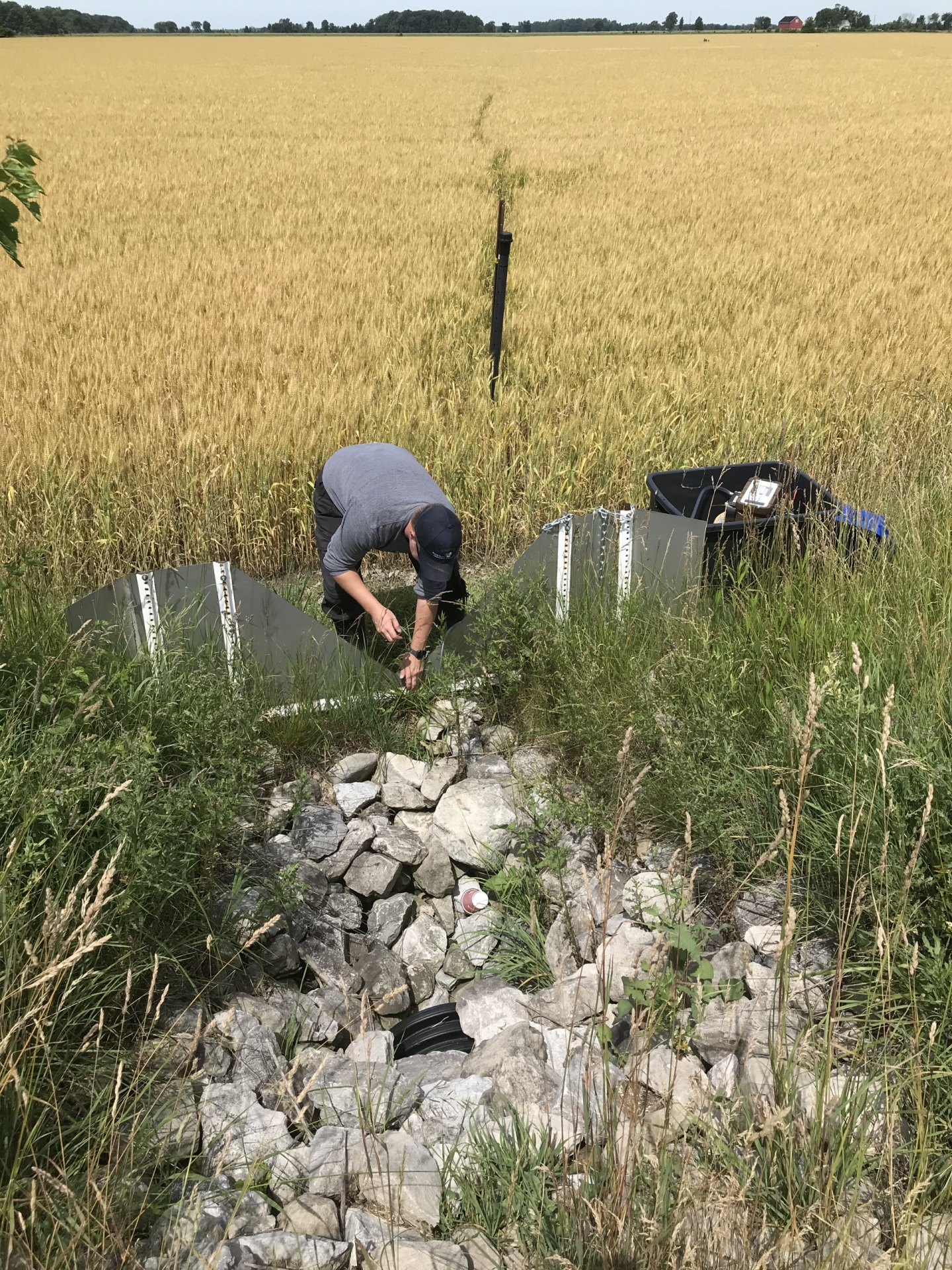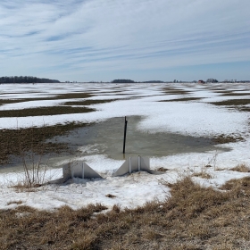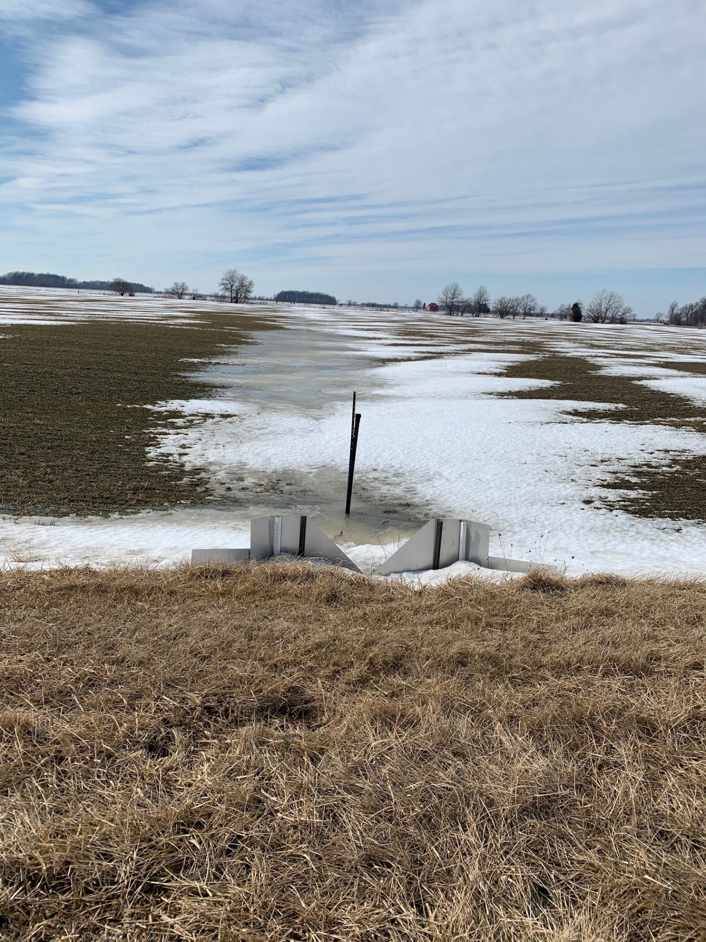 The Wigle Farm Edge of Field site is a 48 acre parcel of land that is committed to using conservation practices, including no-till, and uses a full crop rotation that includes corn, soybean, wheat and cover crops. The parcel has three distinct overland swales where weirs have been constructed to collect surface water during extreme rain/snow melt events. Three level loggers have been installed at each weir that will allow for the calculation of the volume of water that leaves the field via surface flow. These data will be used in conjunction with data from other sites involved in the ONFARM program to determine BMP effectiveness.