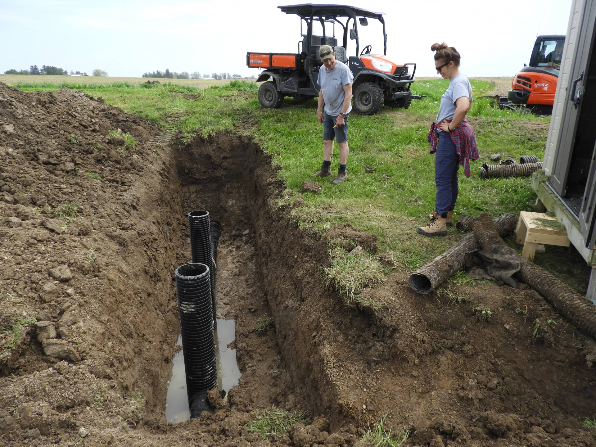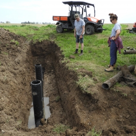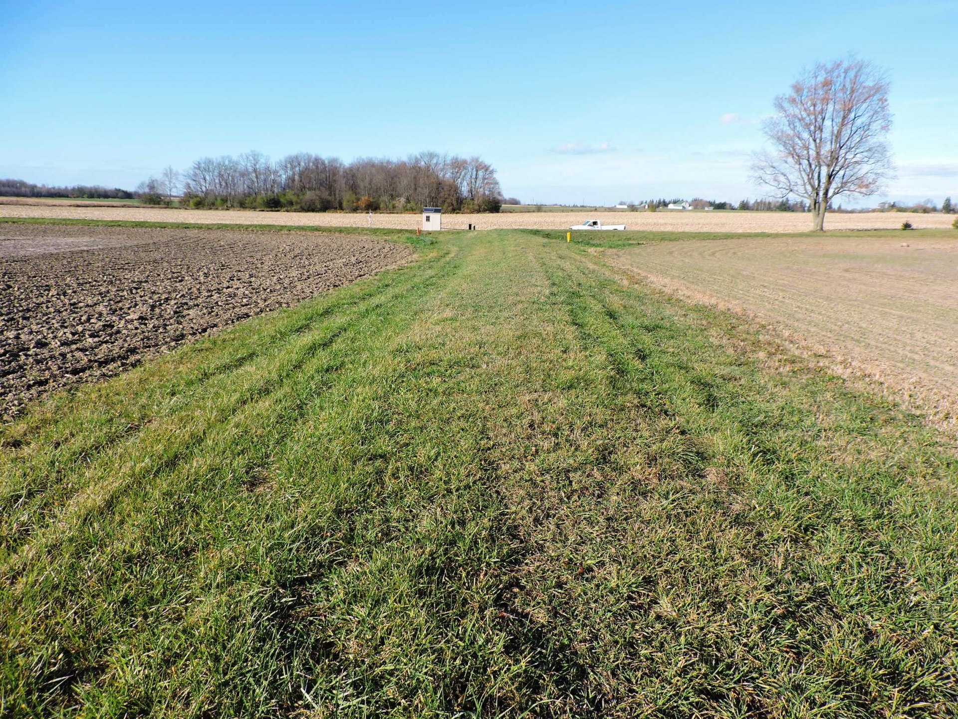 This project aims to quantify the impact of cover crops on water quality at the field scale. Cereal rye was planted in fall 2020, following soybean harvest, and a portion of the field was left without a cover crop. A T-shaped berm in the field separates the two treatments, each with its own tile and surface outlet. The cereal rye will be terminated in the spring ahead of sweet corn and the cover crop trial repeated in fall 2021.