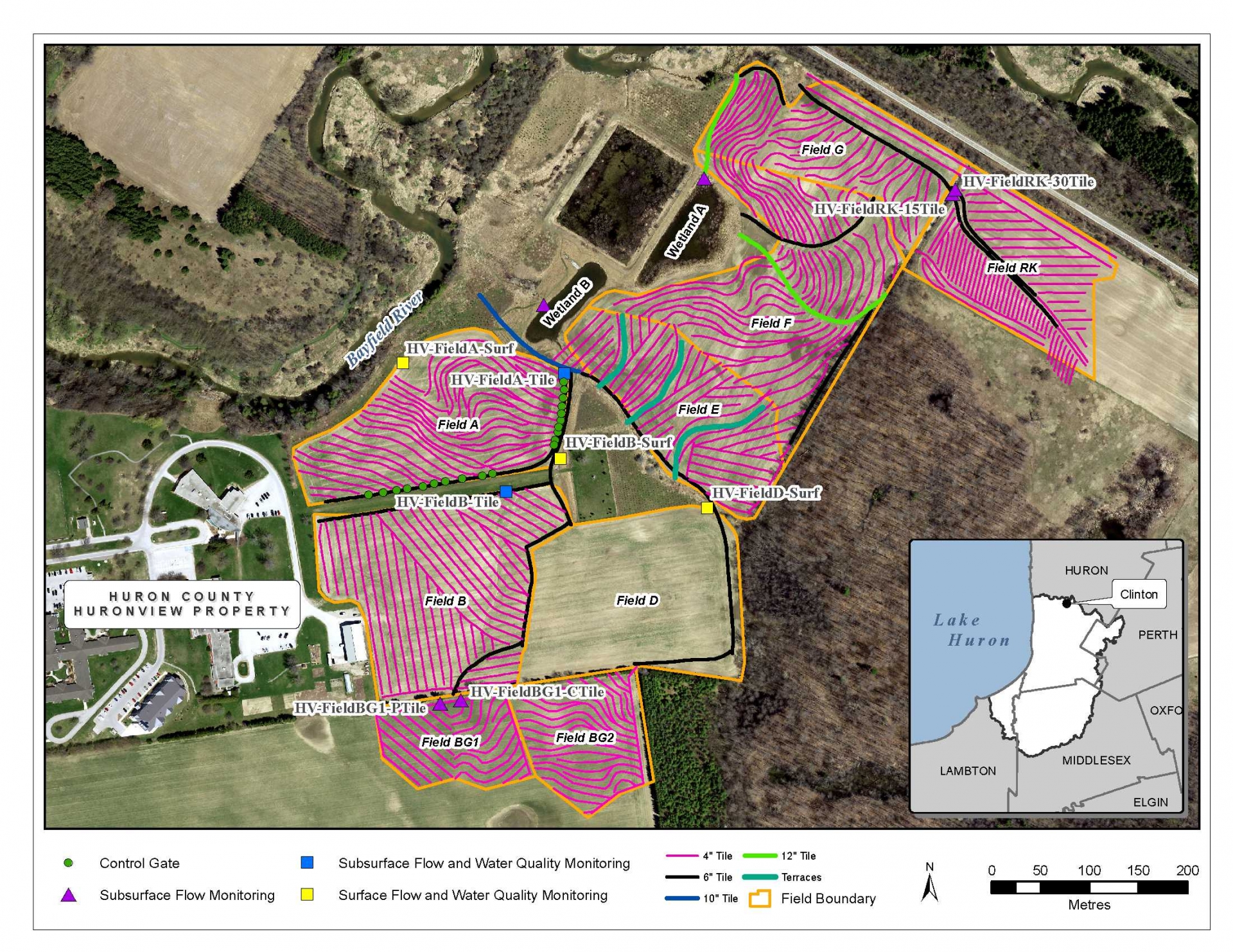 At the Huronview Demonstration Farm, Huron County, the Huron County Soil and Crop Improvement Association and the Ausable Bayfield Conservation Authority have collaborated with the drainage industry to evaluate innovations in tile drainage. An innovative drainage project with contour drainage, control gates, wetlands, and terraces were installed starting in March 2019, culminating in a drainage demonstration day with over 300 people on June 19, 2019. Crop yields, soil health and water quantity and quality monitoring at the site follows a before, after, control, impact design. Ongoing knowledge technology transfer includes: A website, signs, trade magazine articles, conferences, peer-to-peer events, and more.