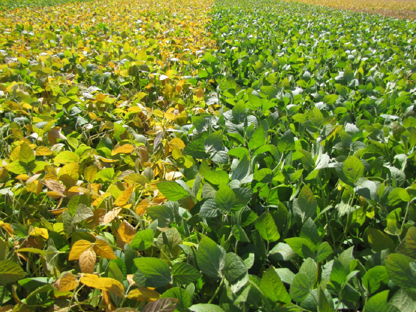 White mould was present at two sites during the three years of this study but disease pressure was low. Other leaf disease incidence was extremely low. Average trial yields ranged from 50 to 61 bu per acre. It was observed that soybean maturity could be slightly delayed with the application of foliar fungicides. See Image 2. These delays were generally less than 2 days in the fall and did not hinder harvest timing.