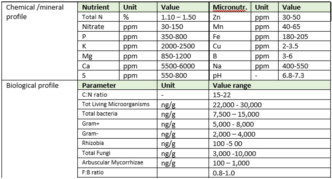 Table 1 – Chemical and Biological profile of HumaTerra Soil Enhancer