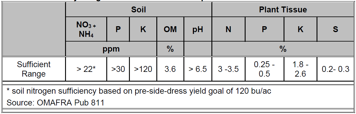 Table 3: Sufficiency Ranges for soil and tissue samples