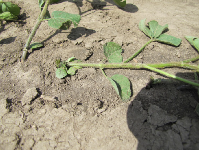 Image 2: Rolling at the 3rd trifoliate resulted in excessive plant stand losses.