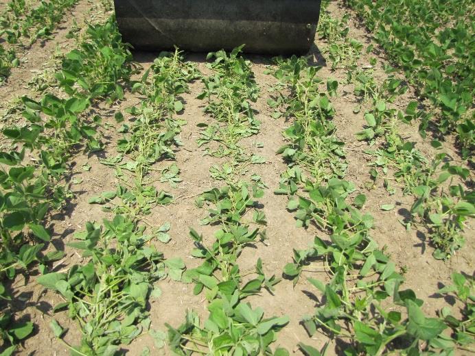 Picture 2: Rolling at the 3rd trifoliate resulted in excessive plant stand losses.