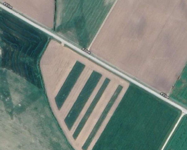 Figure 2. Aerial view of replicated and randomized plot at Drayton site, spring 2019.
