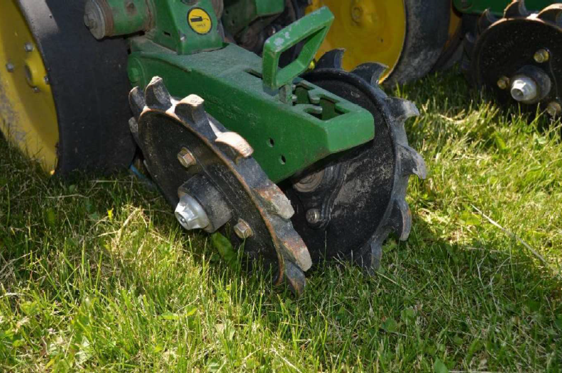 Figure 9. Dawn Gaugetine closing wheels used for seeding soybeans into rye mulch at project sites in 2020.