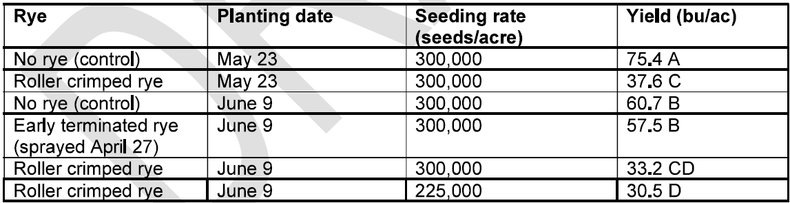 - If rye stand is poor or precipitation is below normal in May, strongly consider an alternative to crimping and seeding soybeans no-till, e.g. tilling rye under or cutting rye for feed and planting tillage-based soybeans