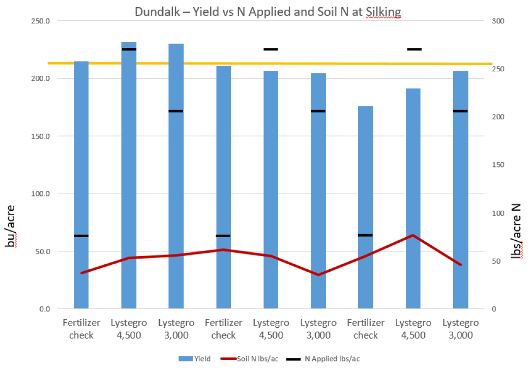 - LysteGro @ 3,000 gal/ac approximately 2/3rds recommended N target