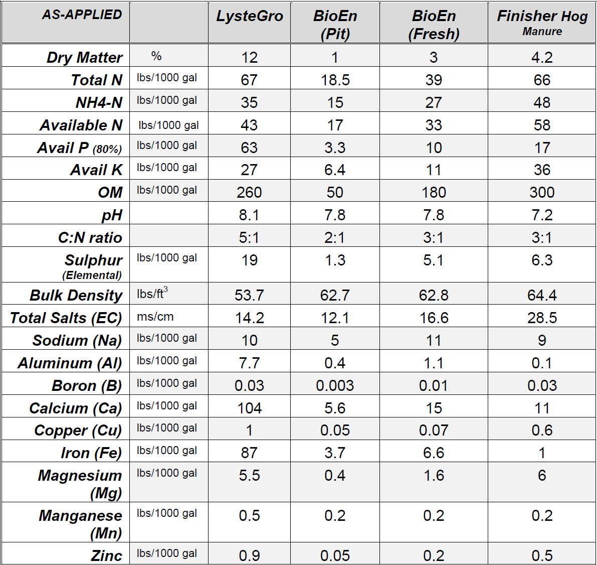 - Two sites had finisher hog manure applied as a treatment compared to Lystegro and/or BioEn anaerobic digestate