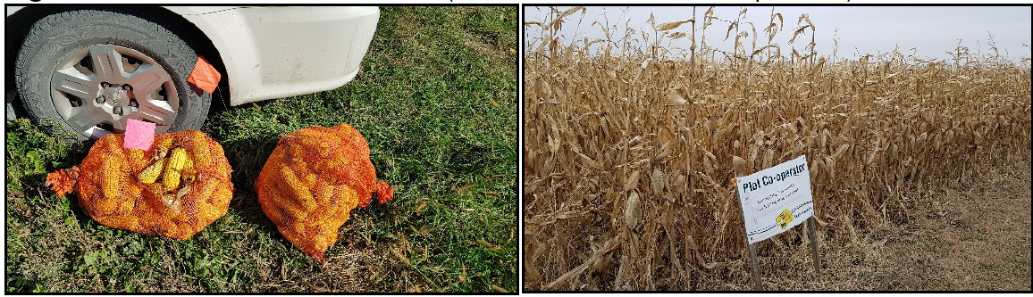 Figure 5. All 17 sites were hand harvested. The late start to the planting season meant a later harvest with some project fields not being combined until winter. Stalk strength was a significant issue in one location.