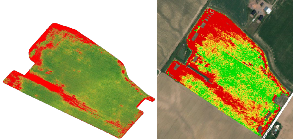 Figure 4. NDVI map flown on July 18, 2018 on the left and the yield map on the right.