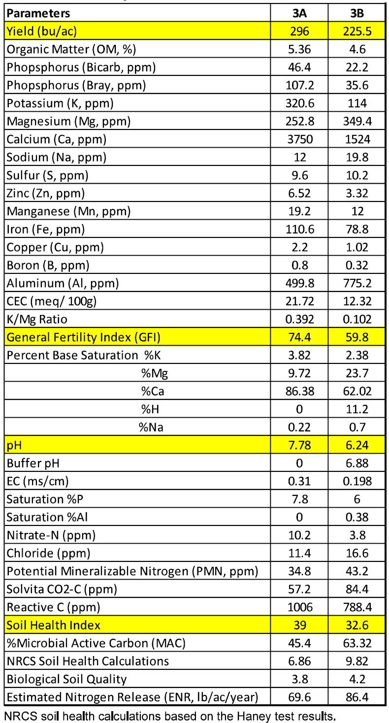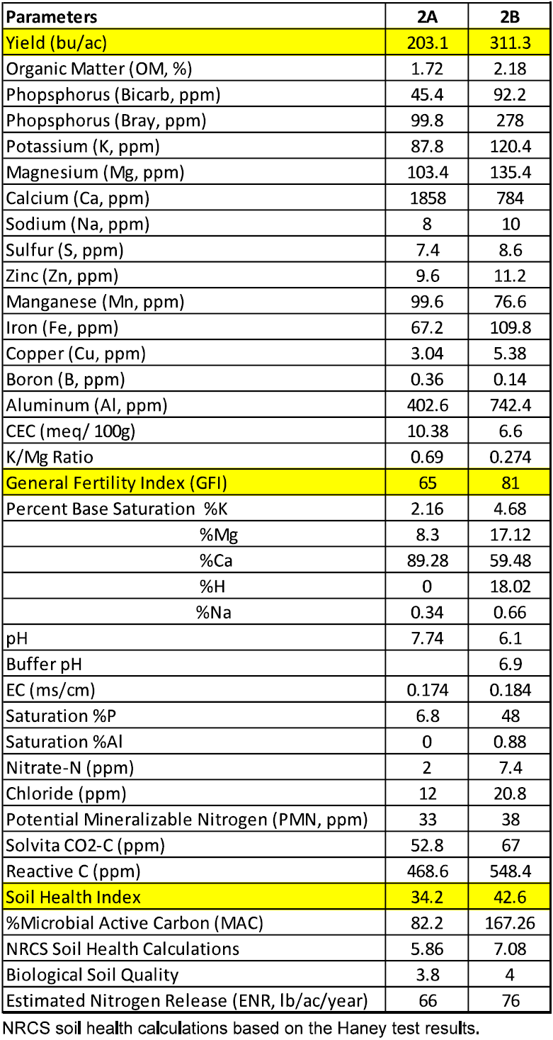 The differences observed in the soil chemistry and microbial communities present at each site support the yield result differences at the two locations.