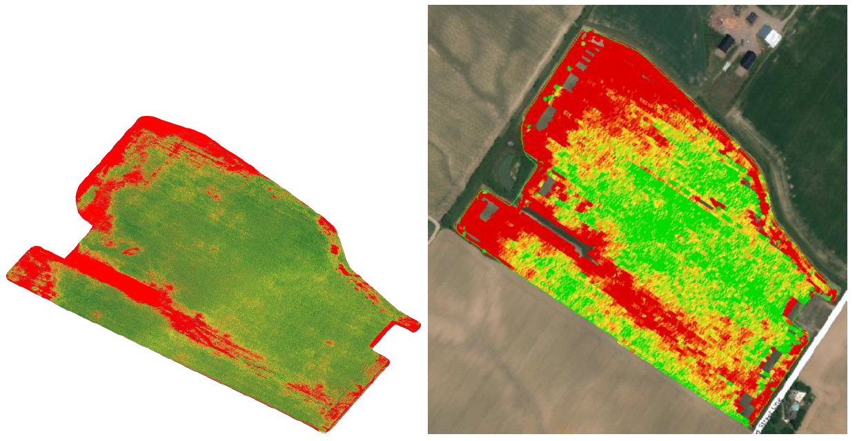Figure 4. NDVI map flown on July 18, 2018 on the left and the yield map on the right.