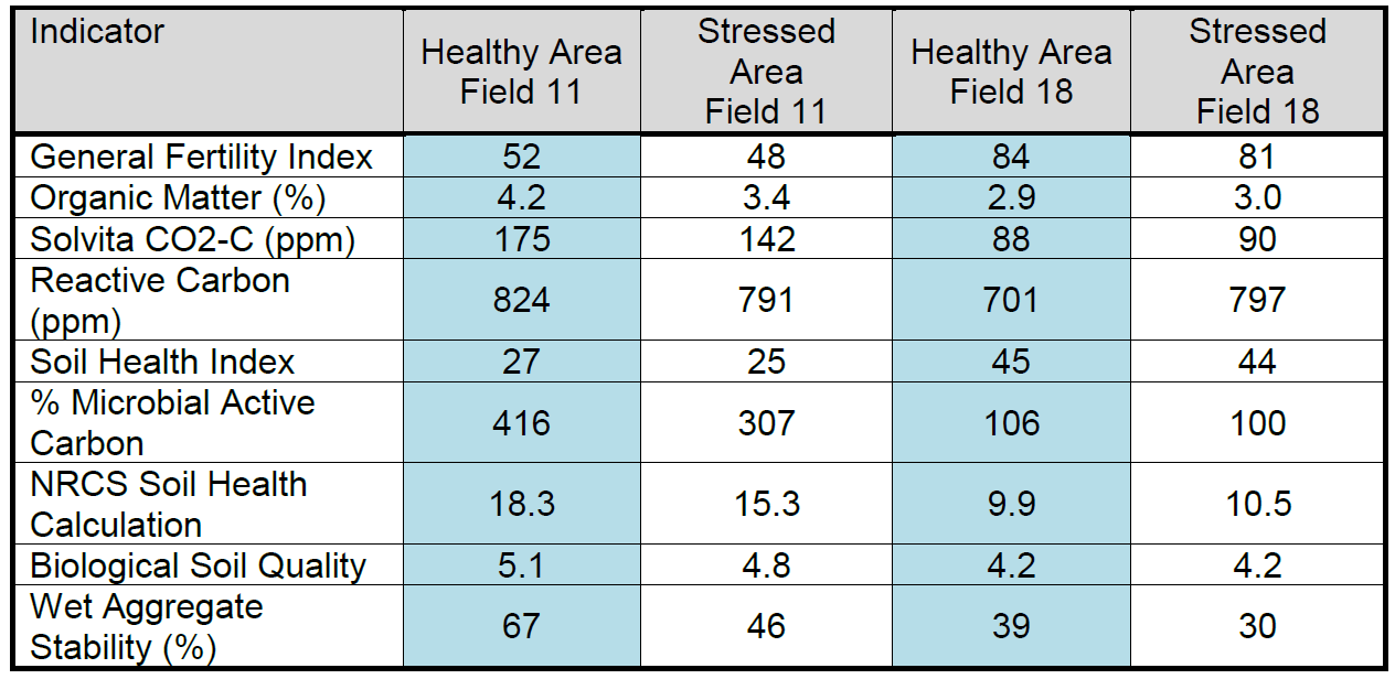 Table 2. Soil Health Indicators of Healthy Areas Compared to Stressed Areas