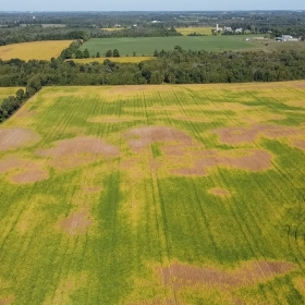 The best management practices (BMP) shown at this ONFARM site is a comparison of using an organic amendment (municipal compost) with and without a multi-species cover crop. The field site is a complex rolling landscape on a sandy loam till soil. The soil health goals are to improve soil structure and organic matter levels to improve the long-term viability of soils to produce crops.