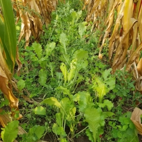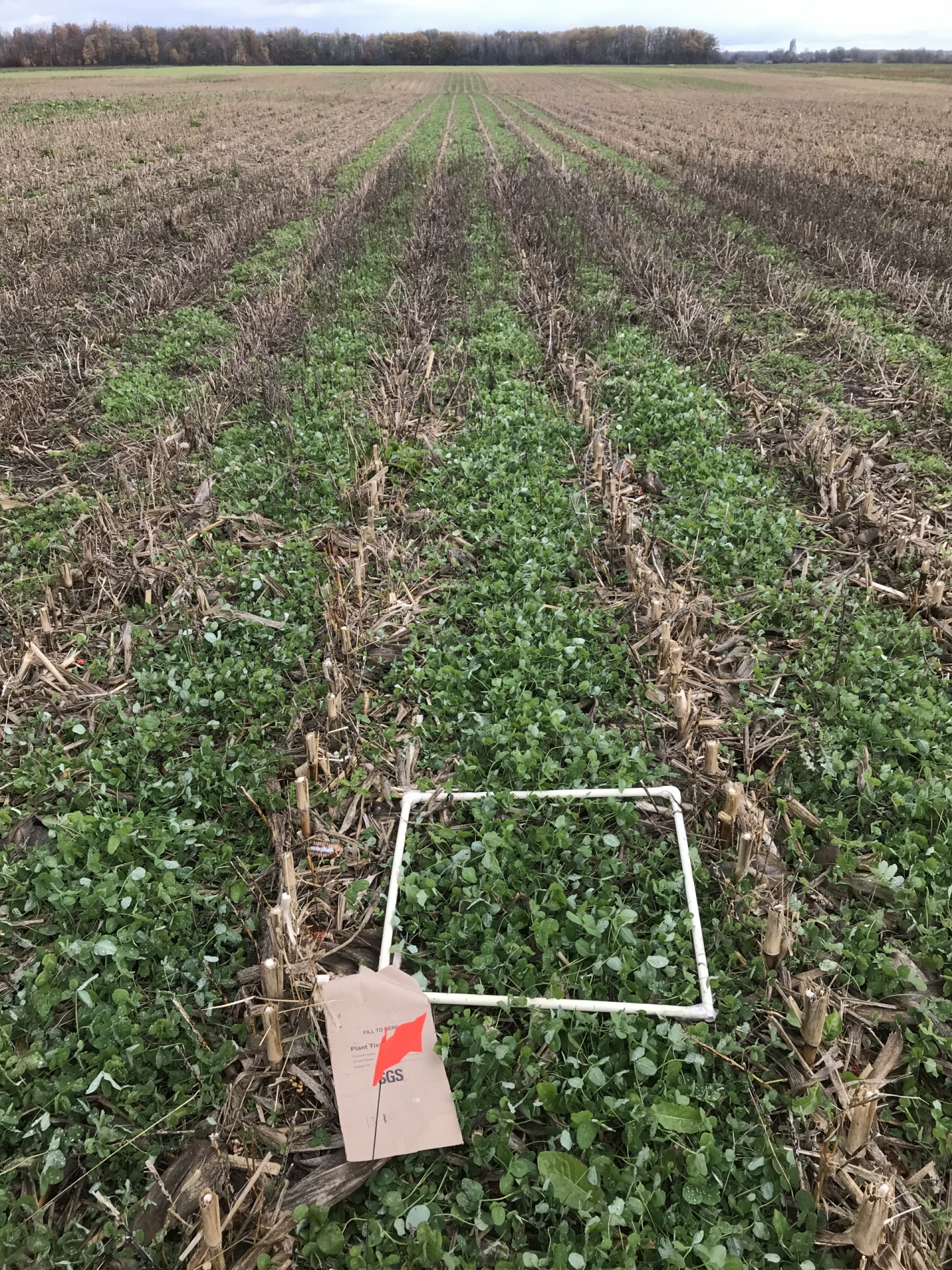 2020: Corn under minimum tillage with 2 early interseeded cover crop mixes