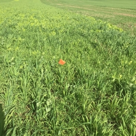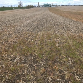 The best management practice (BMP) shown at this ONFARM site is a comparison of cover crops from single species to multi-species cover crops. The field site is a uniform sloped rolling landscape on a sandy loam till soil. The soil health goals are to increase organic matter and improve water management to optimize productivity.